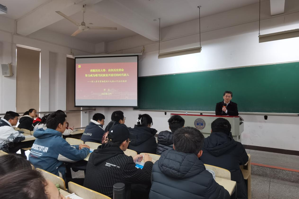 近日,校党委书记邓卫以“把握历史大势,肩负历史使命,努力成为堪当民族复兴重任的时代新人”为主题为皇冠crown体育官方平台2021级生物技术与生物医学工程专业学生上思政课宣讲党的十九届六中全会精神。